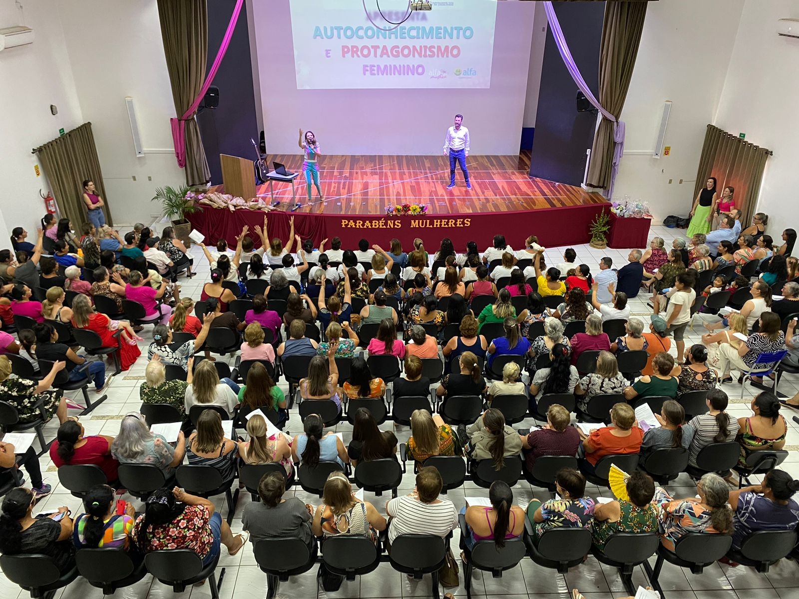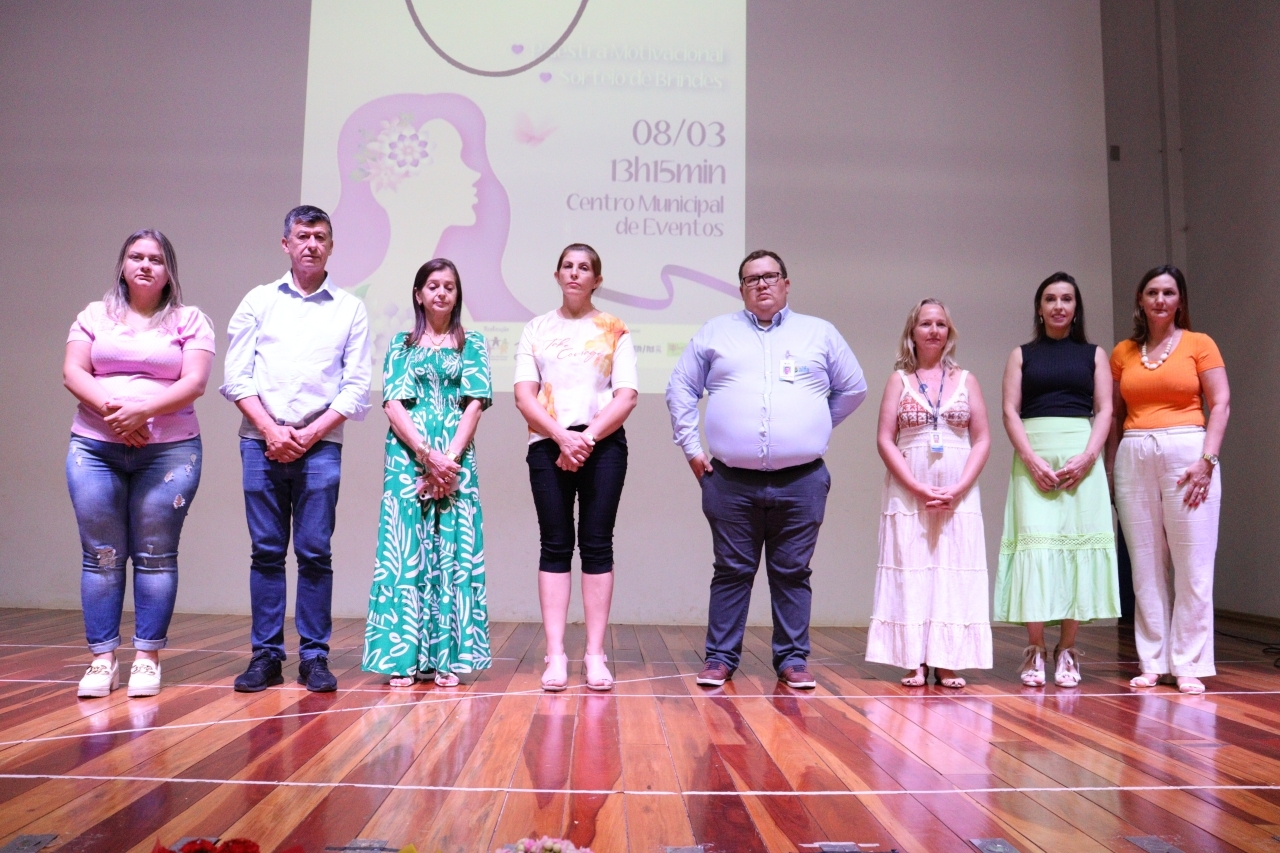 Nesta quarta-feira, 08 de março, foi realizada uma palestra motivacional as mulheres em comemoração ao Dia Internacional da Mulher. O evento contou com a participação da primeira-dama, Viviane Camargo, da segunda-dama, Adriana Iltchenco, e demais autoridades. Foi realizado no Centro Municipal de Eventos e teve a participação das mulheres do município que lotaram o local e comemoraram juntas as conquistas e os diretos da mulher do campo e da cidade.