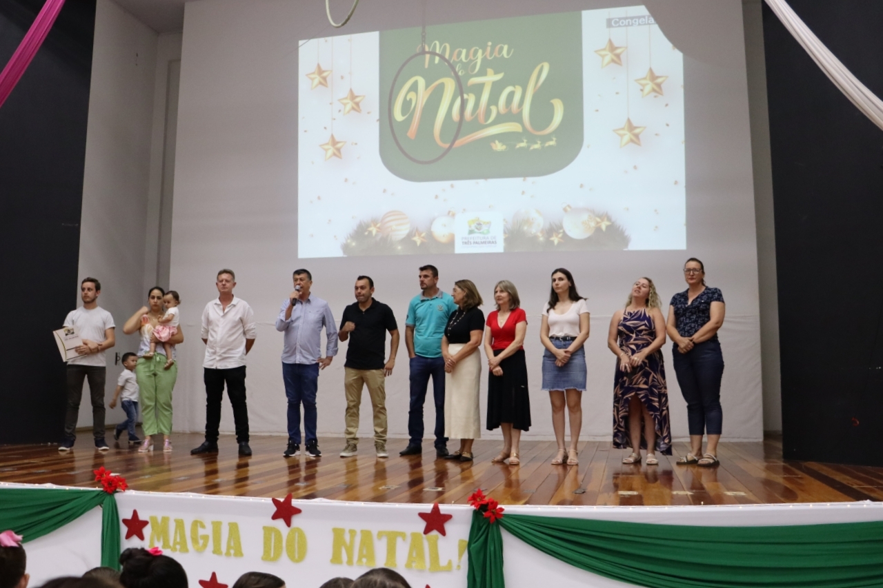 “Como é lindo ver as nossas crianças e jovens se apresentando nesta noite, neste tempo de natal que nos recorda a importância da vida e de Jesus para nossas vidas. Agradeço a cada uma delas pela sua dedicação ao longo do ano e a todos os que vieram prestigiar este belo evento de nossa Três Palmeiras”, destaca o prefeito Magal.