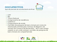 Para efetuar a inscrição é necessário levar os seguintes documentos que não precisam de reconhecimento de firma: CPF; RG; título eleitoral; comprovante de residência; CadÚnico; comprovante de renda; Certidão de pesquisa de bens imóveis em nome do interessado emitida pelo Cartório de Registro de Imóveis da Comarca de Ronda Alta – RS e caso esteja casado ou em união estável, certidão de pesquisa de bens imóveis do companheiro(a); declaração de inexistência de bens em nome de filhos maiores de 18 anos (caso morar juntos); comprovante de contrato de aluguel com assinaturas autenticas ou comprovante de endereço que esteja no nome do interessado; comprovante de rendimentos dos membros do grupo familiar de todos com mais de 18 anos.