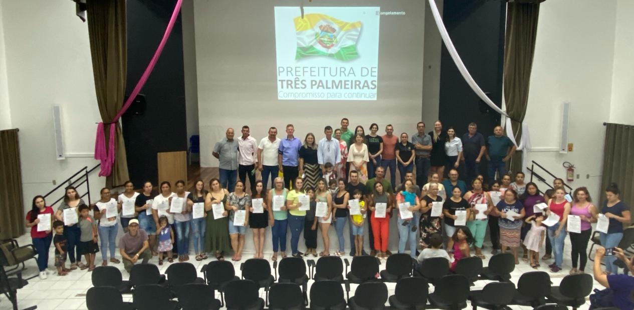 Nesta terça-feira, 12 de março, foi realizada a assinatura dos contratos das famílias beneficiadas no Programa Habitacional Pró-Moradia, desenvolvido pela Prefeitura de Três Palmeiras. Ao todo 33 famílias irão realizar o sonho da casa própria, com habitações a serem construídas no loteamento Morada Feliz II.