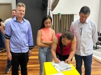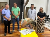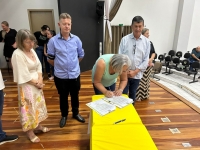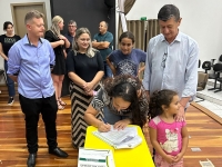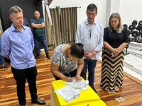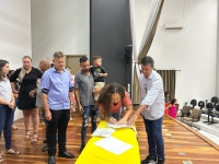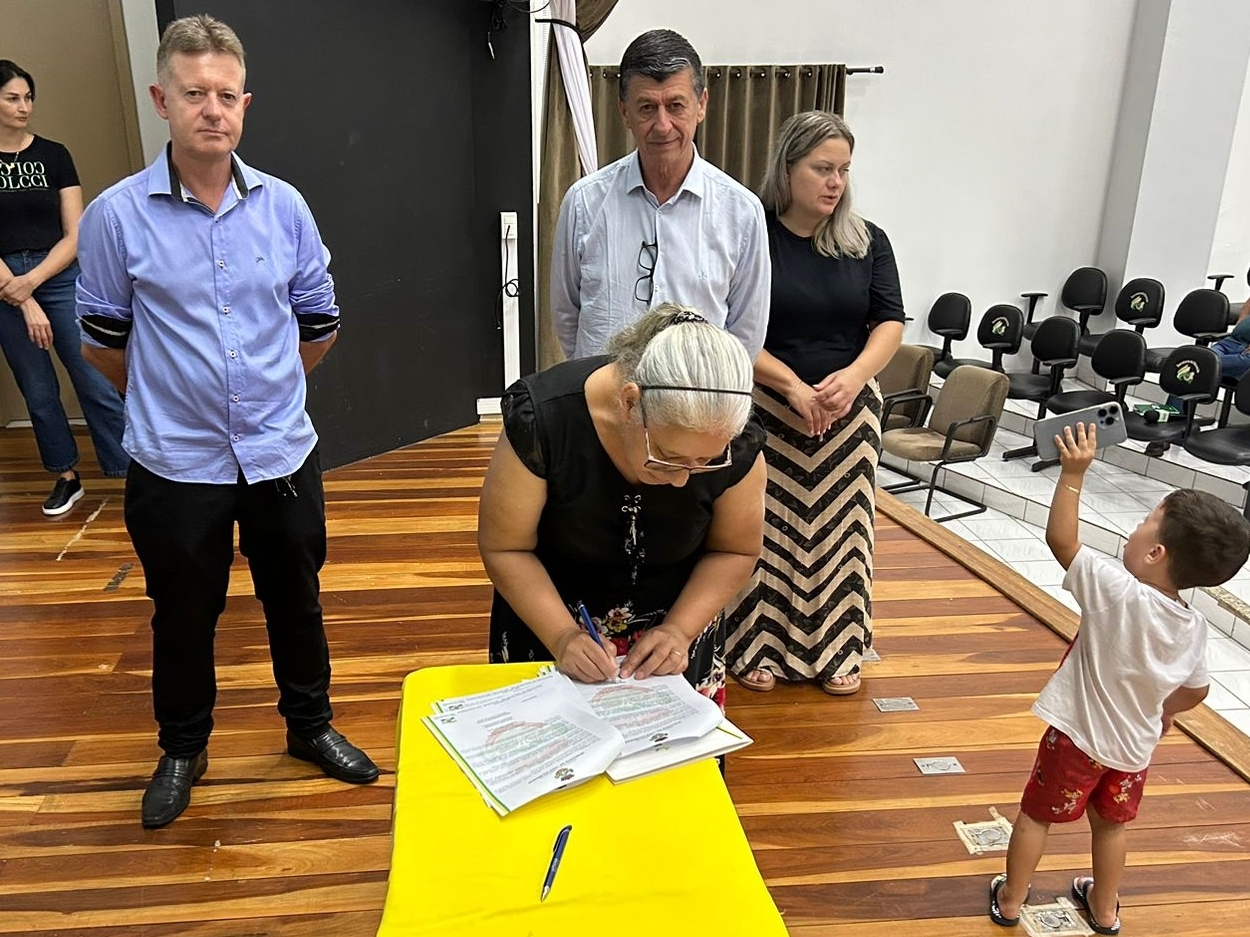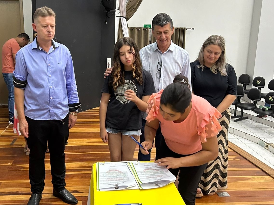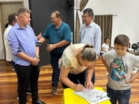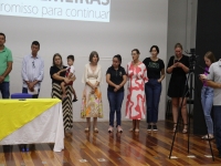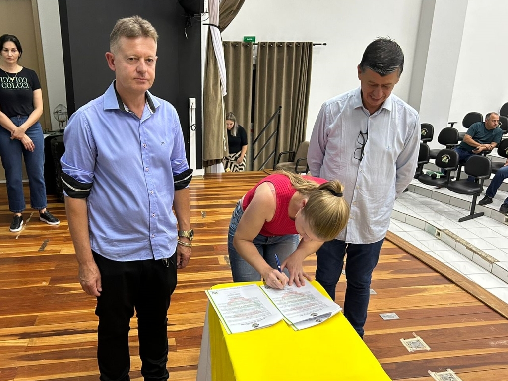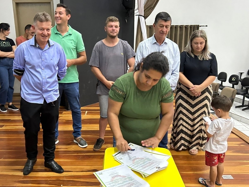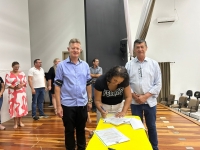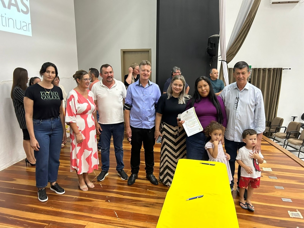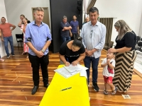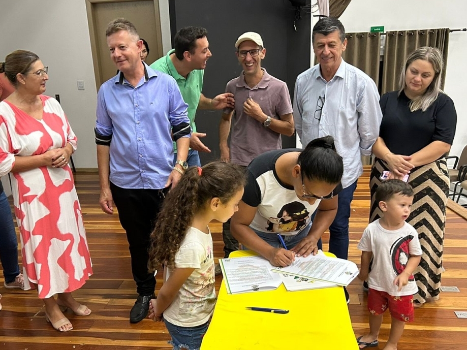 O ato, ocorrido no Centro Municipal de Eventos, contou com a presença do prefeito, Claumir César de Oliveira, do vice-prefeito, Sidemar de Oliveira, do presidente do legislativo, Enio de Saiba, da secretária municipal da Promoção Social, Elizete Fátima de Andrade, vereadores, secretários municipais e mutuários do programa.