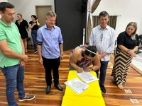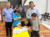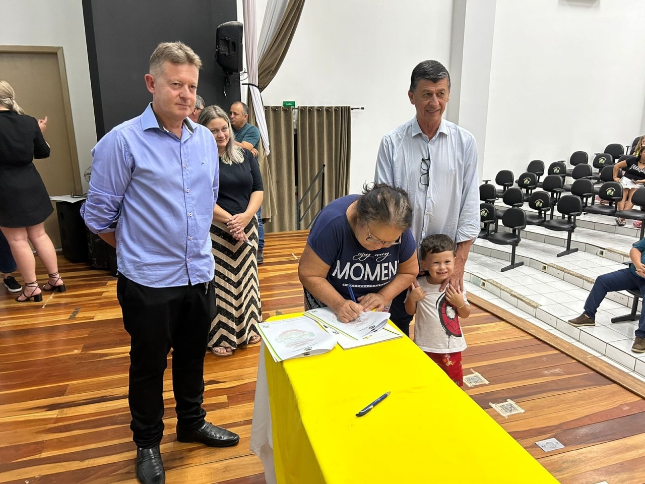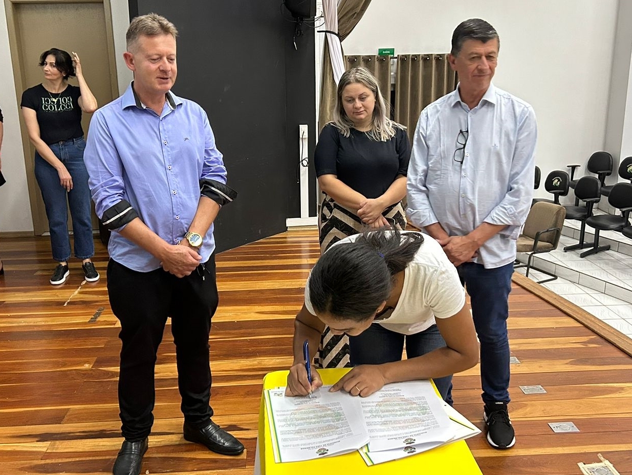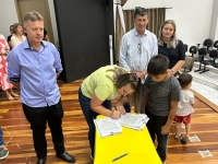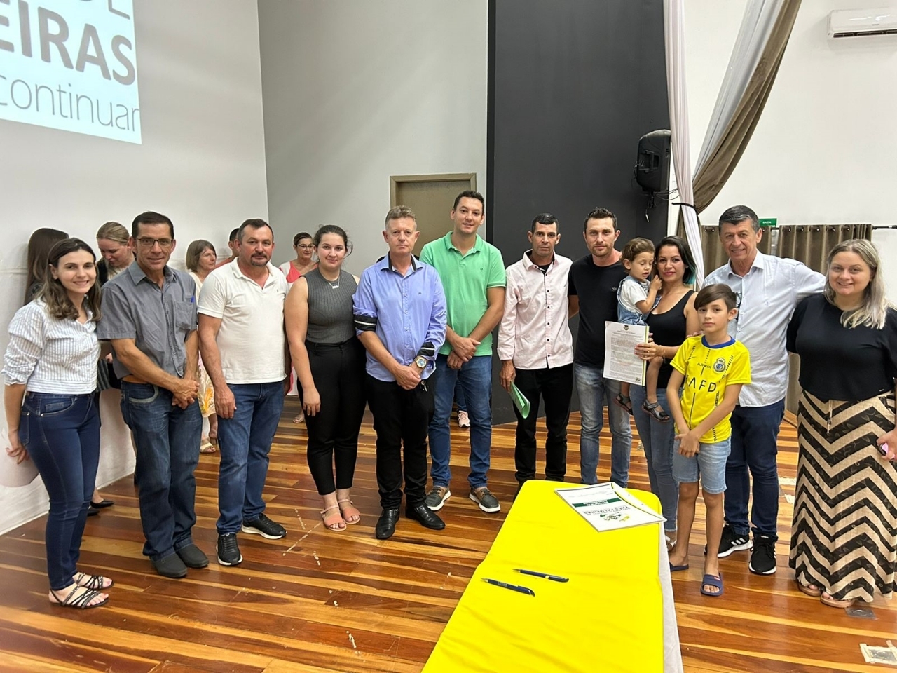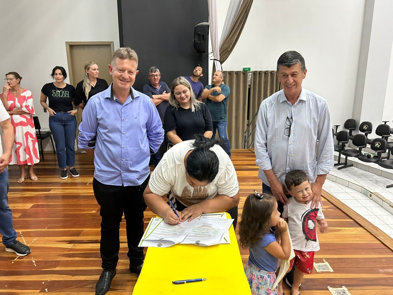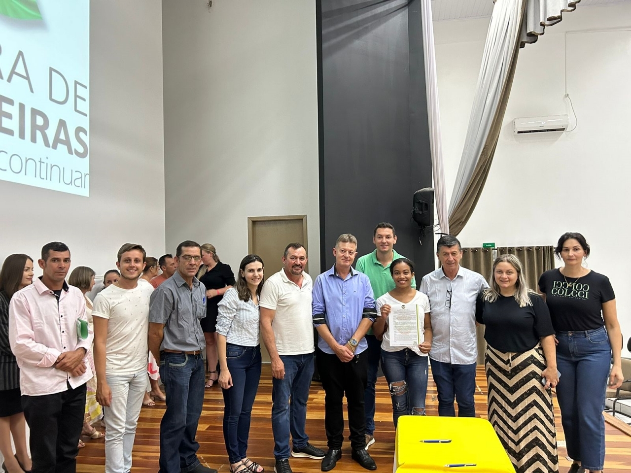 O ato, ocorrido no Centro Municipal de Eventos, contou com a presença do prefeito, Claumir César de Oliveira, do vice-prefeito, Sidemar de Oliveira, do presidente do legislativo, Enio de Saiba, da secretária municipal da Promoção Social, Elizete Fátima de Andrade, vereadores, secretários municipais e mutuários do programa.