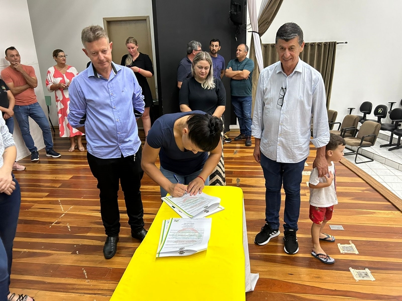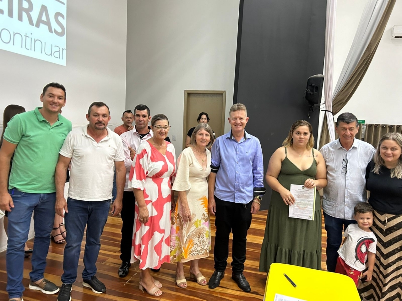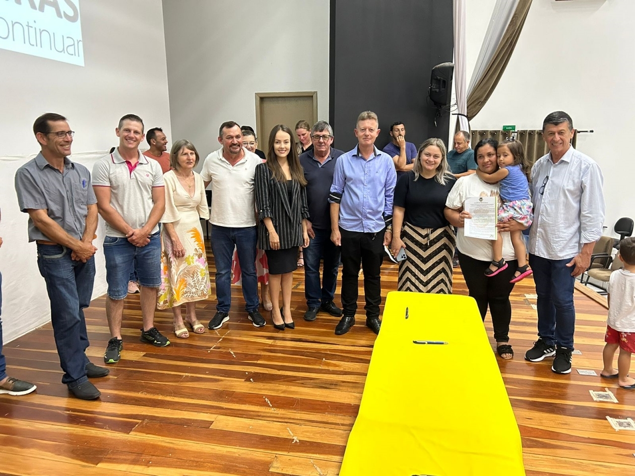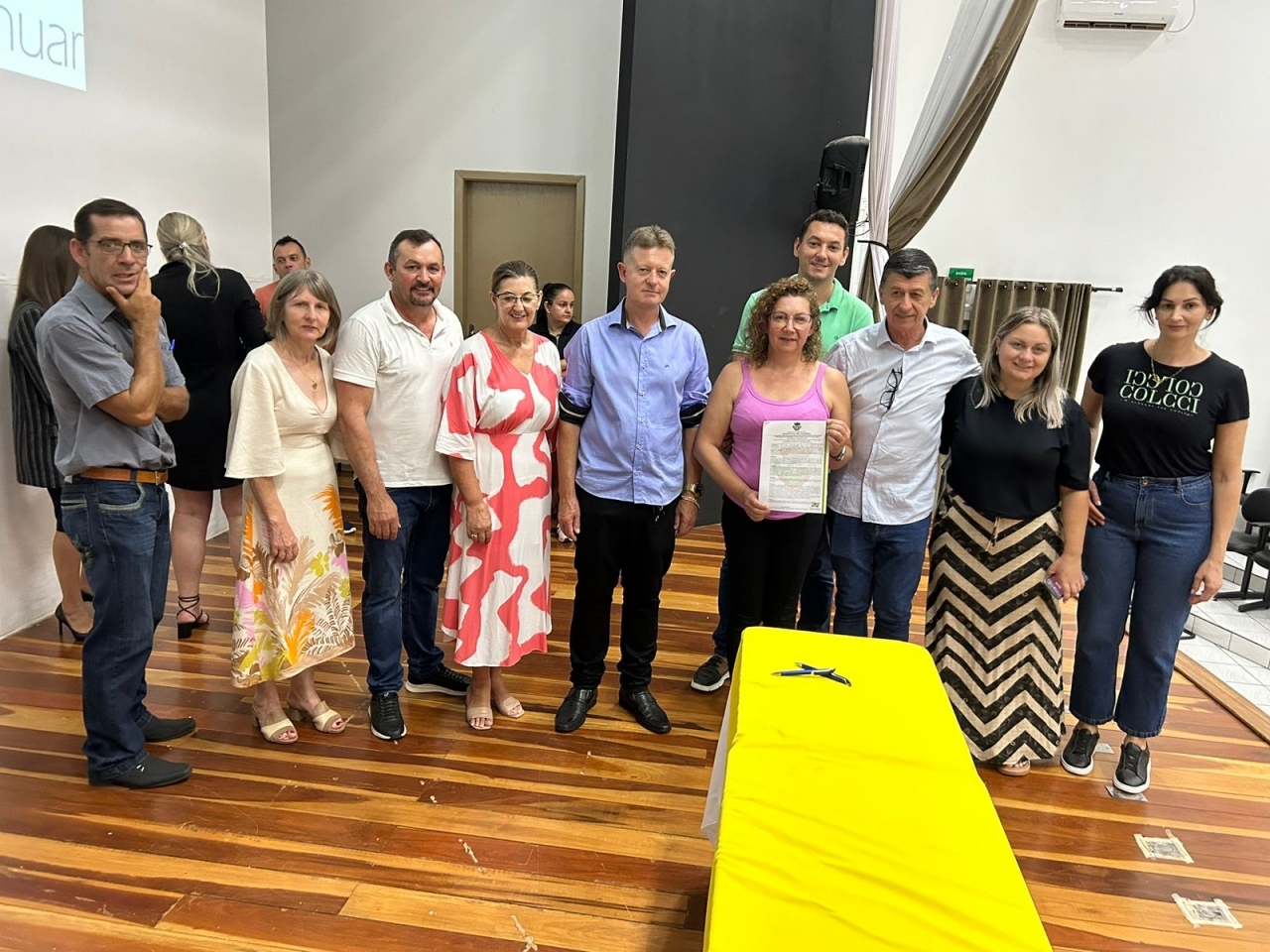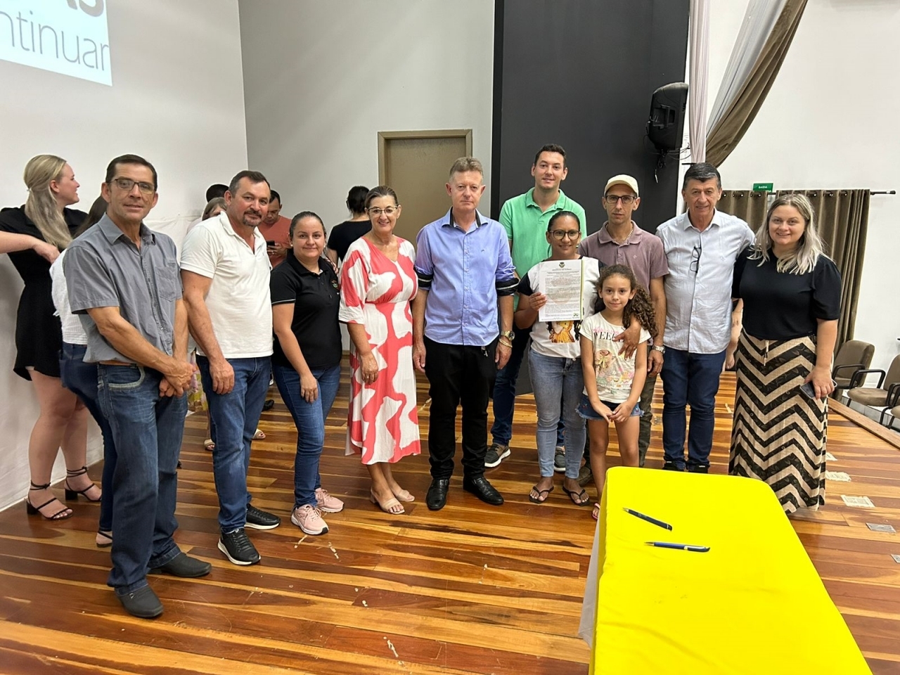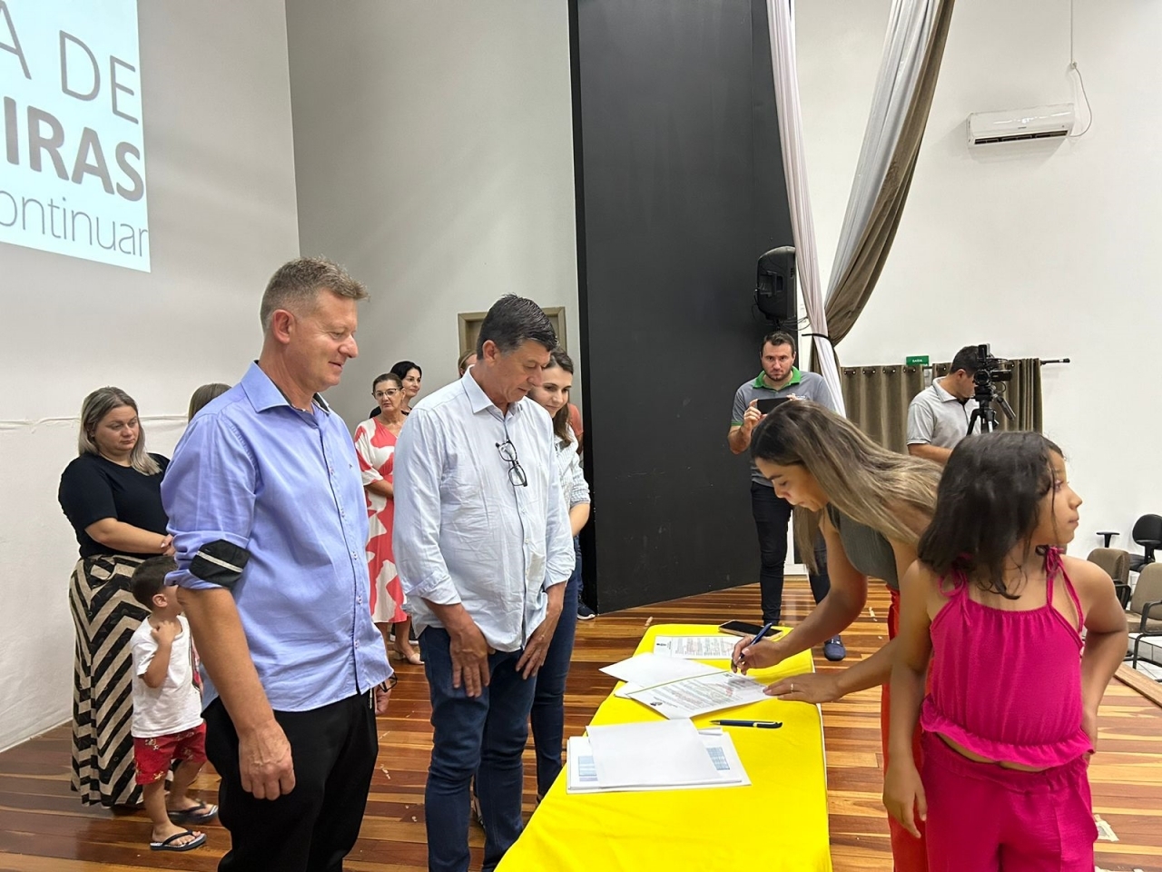O ato, ocorrido no Centro Municipal de Eventos, contou com a presença do prefeito, Claumir César de Oliveira, do vice-prefeito, Sidemar de Oliveira, do presidente do legislativo, Enio de Saiba, da secretária municipal da Promoção Social, Elizete Fátima de Andrade, vereadores, secretários municipais e mutuários do programa.
