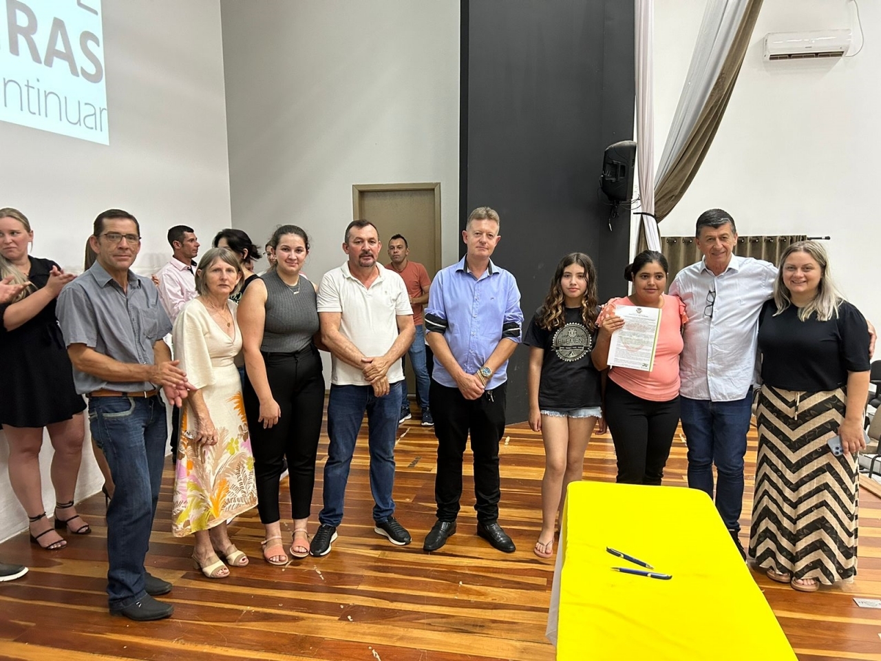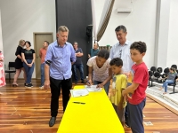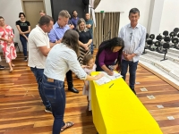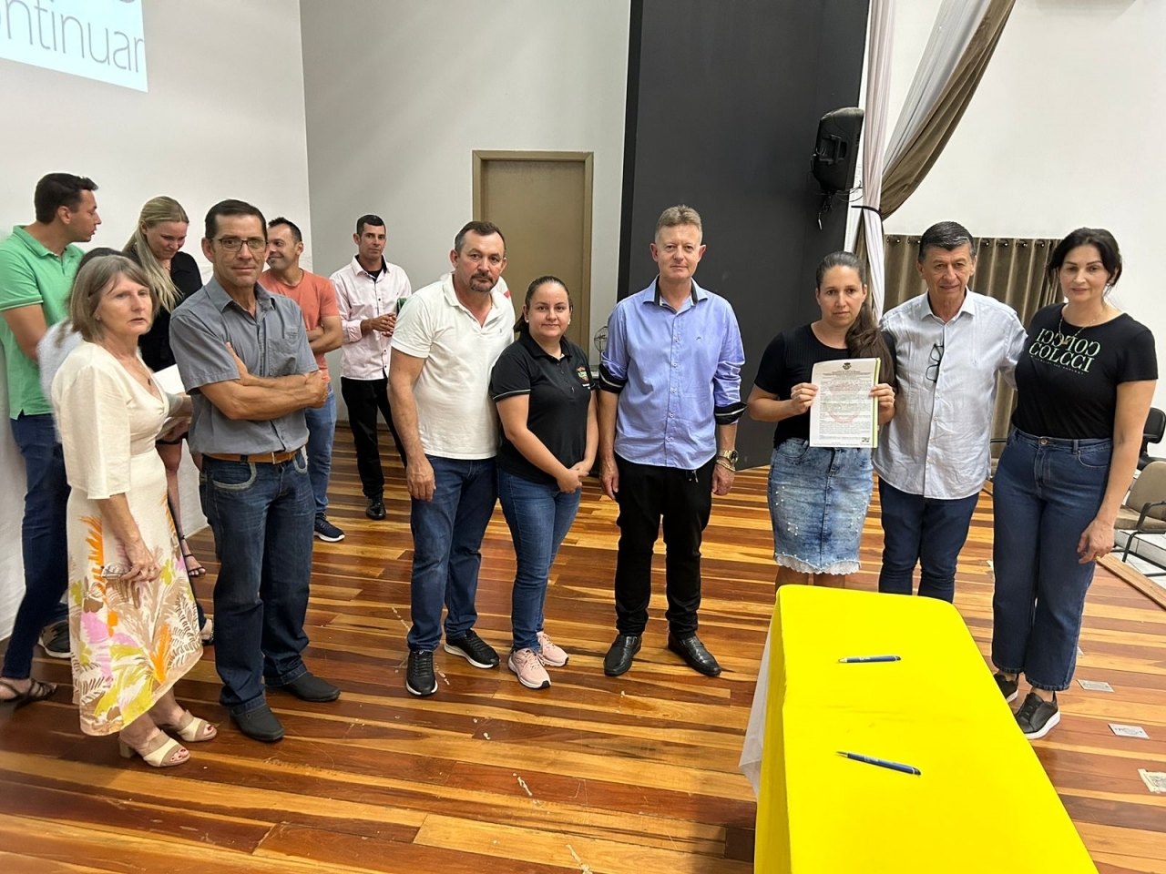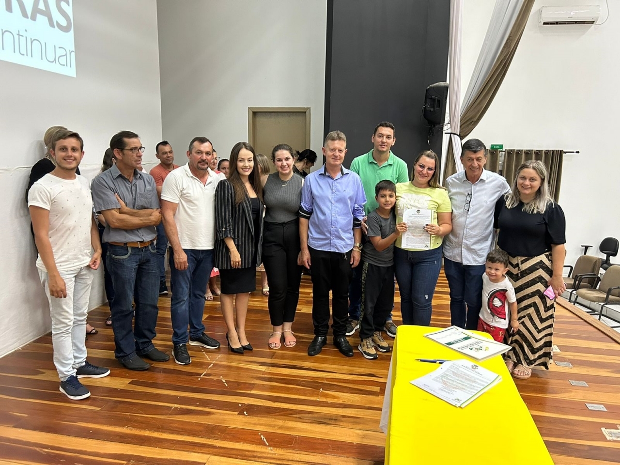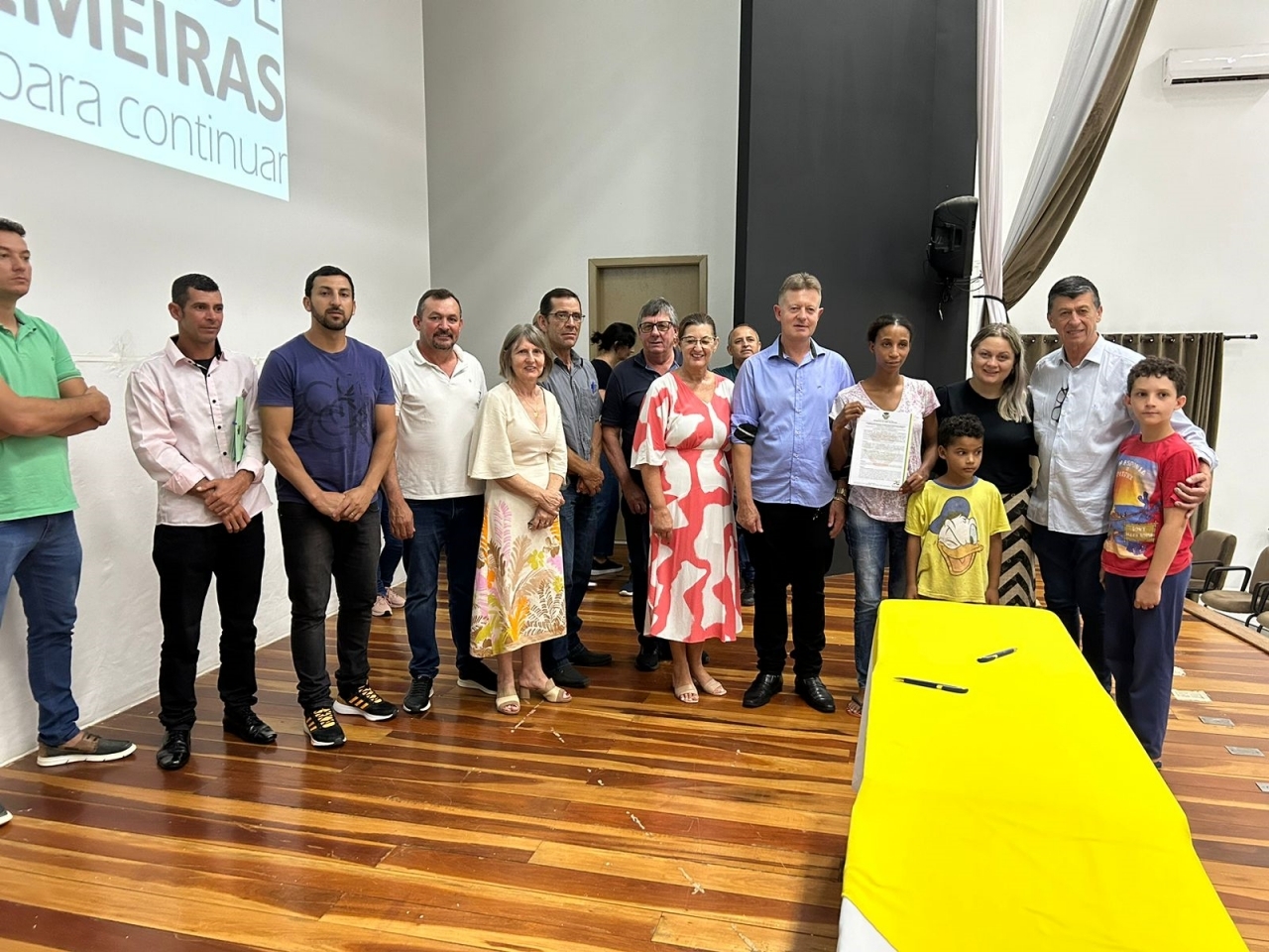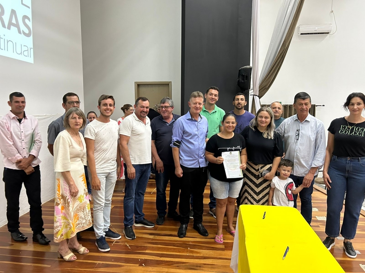 O ato, ocorrido no Centro Municipal de Eventos, contou com a presença do prefeito, Claumir César de Oliveira, do vice-prefeito, Sidemar de Oliveira, do presidente do legislativo, Enio de Saiba, da secretária municipal da Promoção Social, Elizete Fátima de Andrade, vereadores, secretários municipais e mutuários do programa.