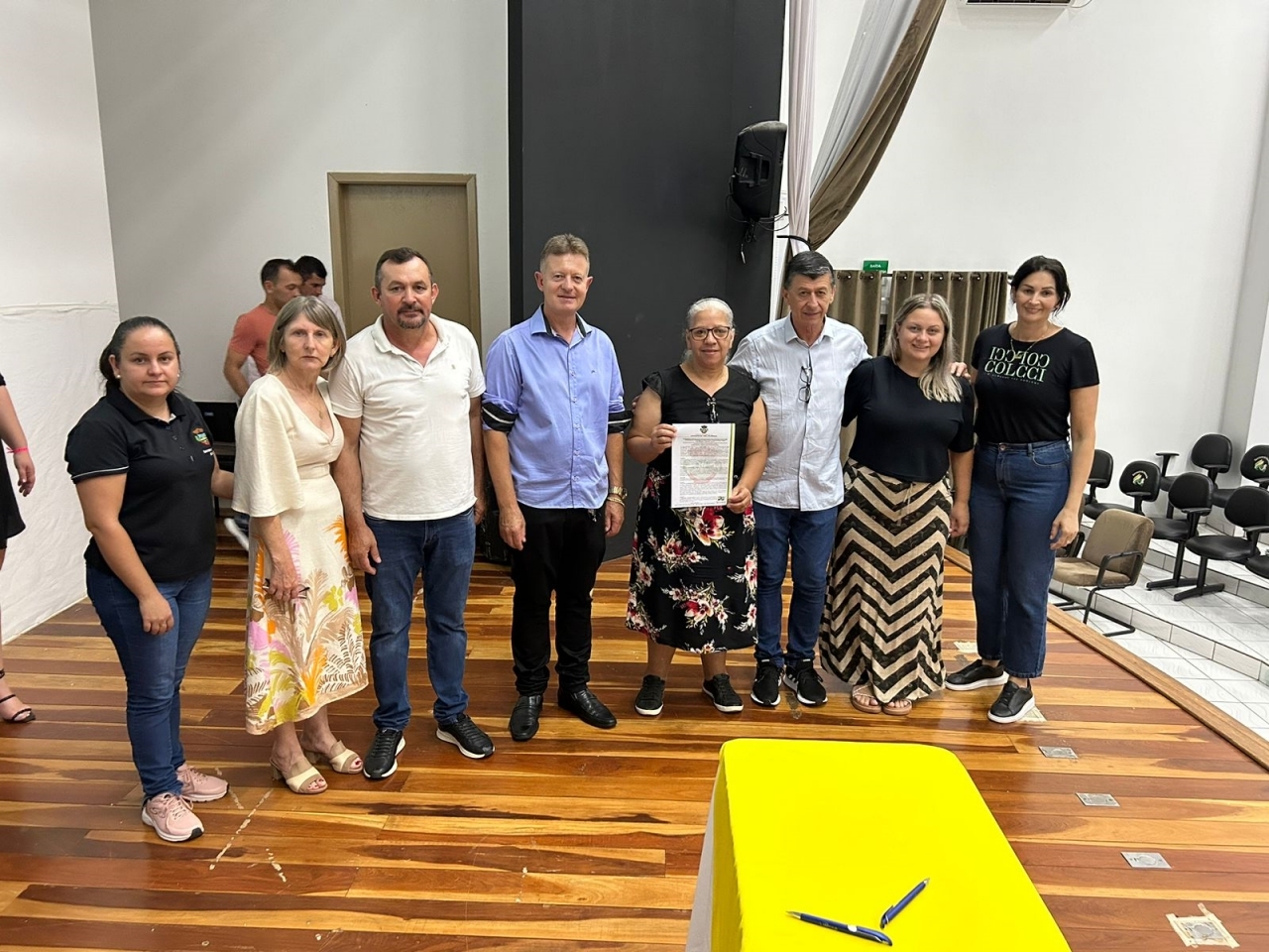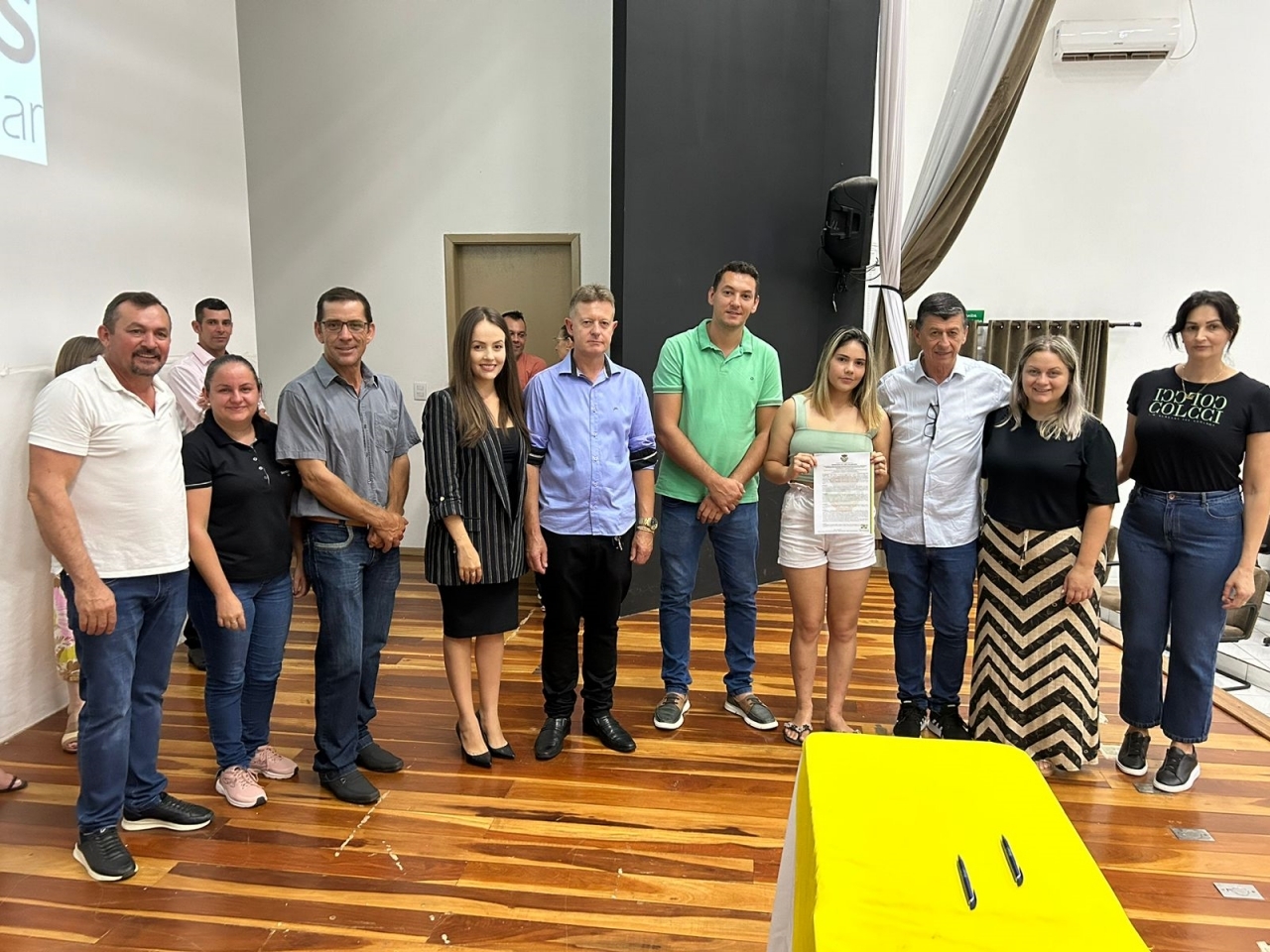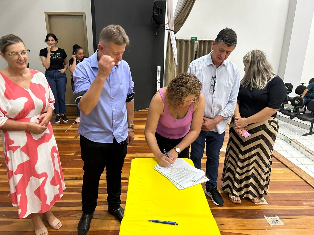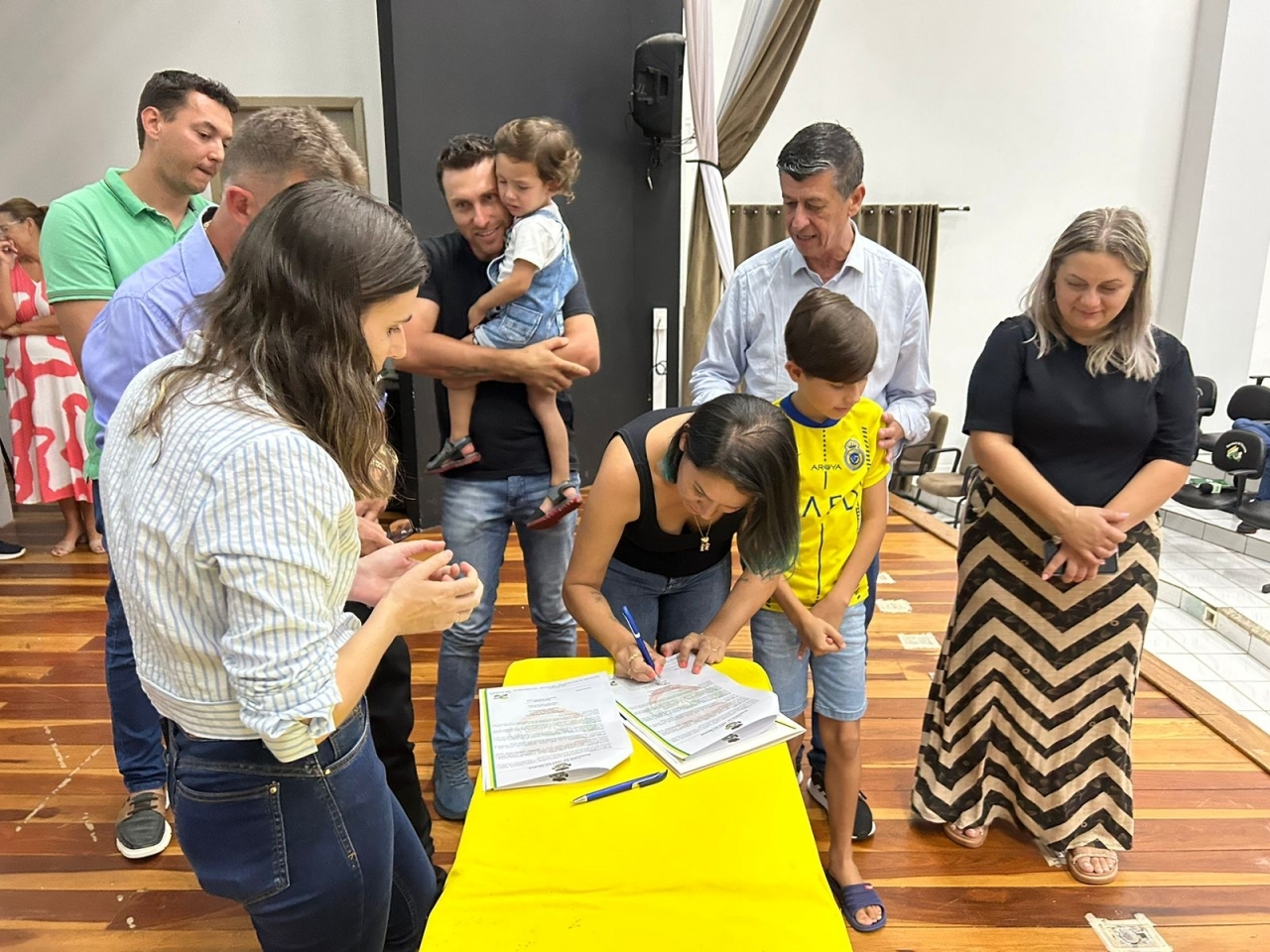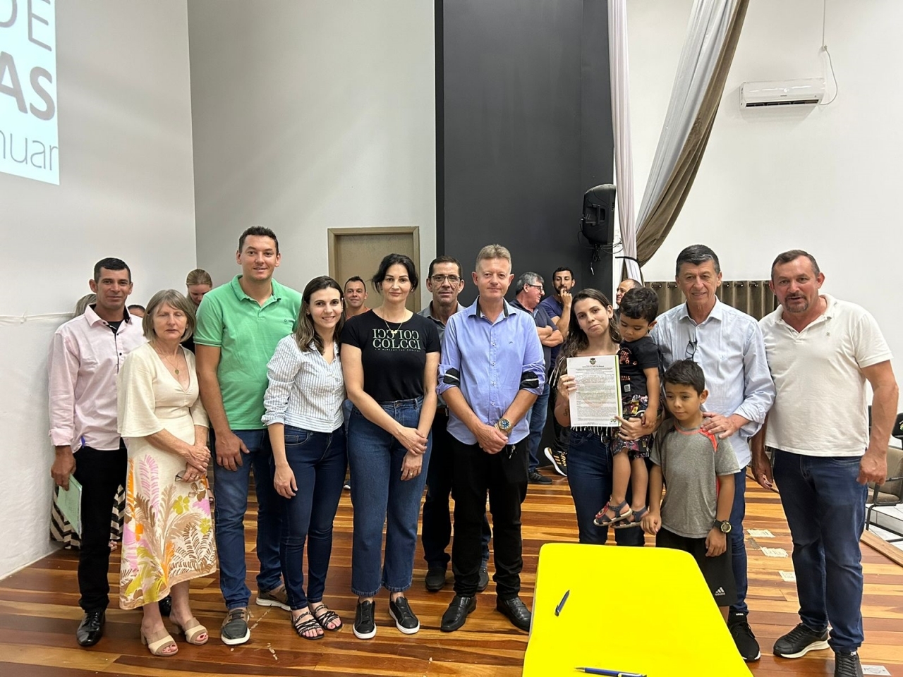O ato, ocorrido no Centro Municipal de Eventos, contou com a presença do prefeito, Claumir César de Oliveira, do vice-prefeito, Sidemar de Oliveira, do presidente do legislativo, Enio de Saiba, da secretária municipal da Promoção Social, Elizete Fátima de Andrade, vereadores, secretários municipais e mutuários do programa.