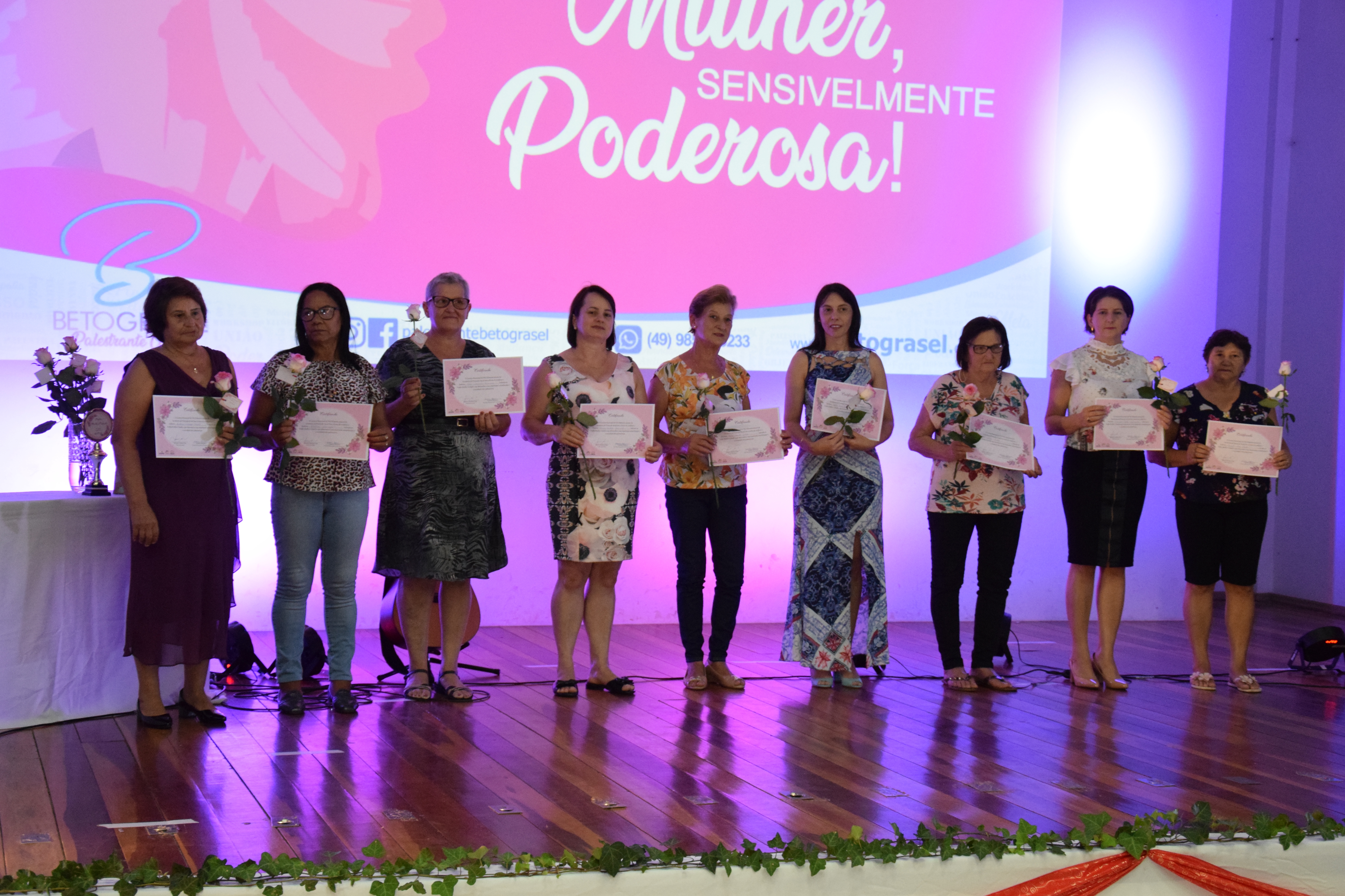 Ainda durante a tarde houve palestra show com o palestrante e cantor Alberto Grasel que conduziu a tarde com o tema: “Mulher Sensivelmente Poderosa”. O palestrante mostrou os grandes feitos realizados pelas mulheres ao longo dos anos e a força das mesmas na sociedade.
