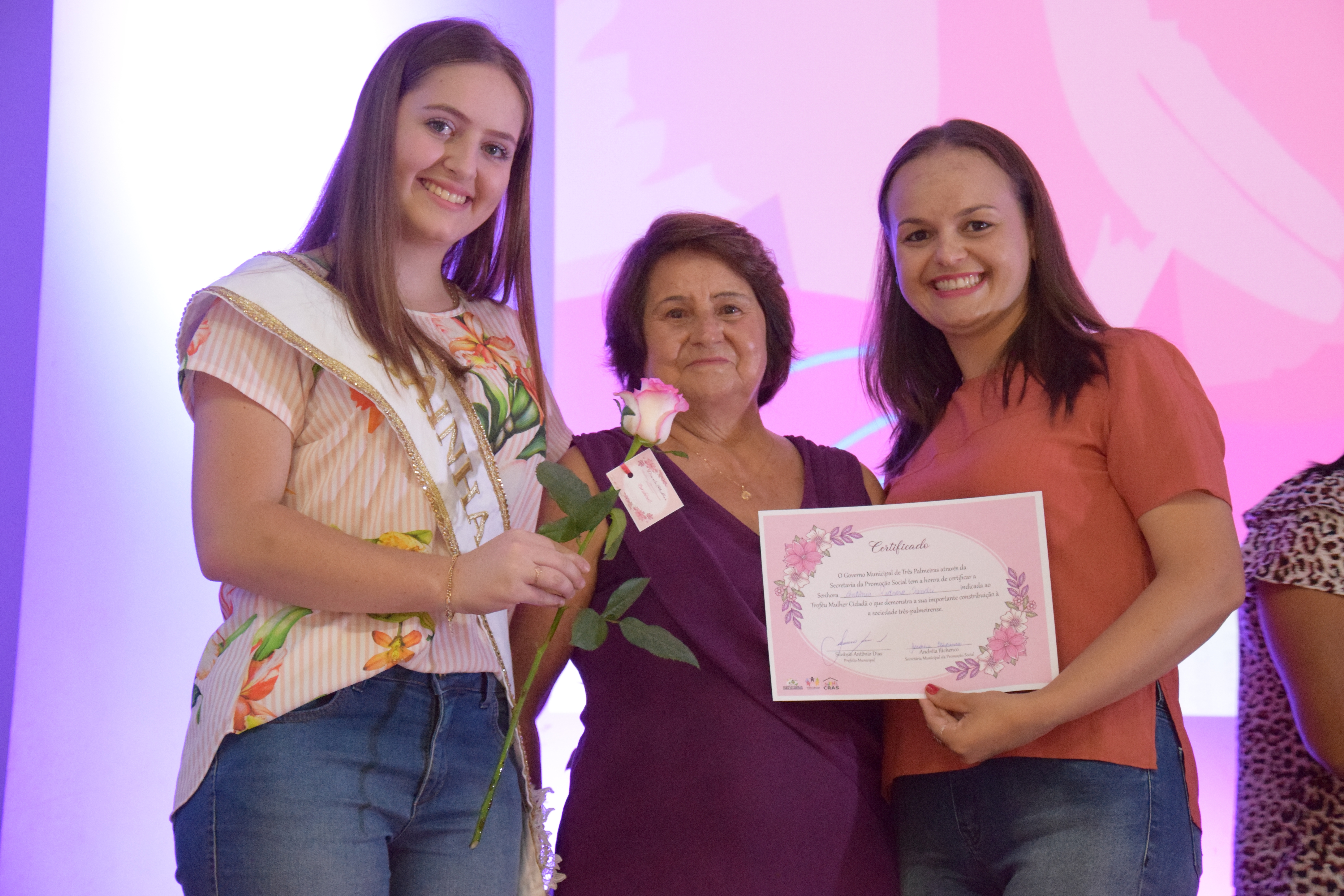 Na oportunidade aconteceu ainda a entrega do Troféu Mulher Cidadã, criado através da lei municipal 1.642/2015. O troféu tem por finalidade premiar e reconhecer a mulher que tenha se destacado ao longo de sua vida, pelos relevantes serviços prestados a comunidade três-palmeirense. Entre os critérios de indicação encontram-se: defesa dos direitos da mulher e combate à violência contra a mulher, educação, promoção e participação política da mulher, profissionalismo e emprego, saúde e atividades comunitárias e voluntariado.